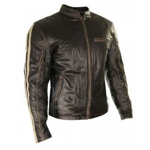 Purchase Your Biker Stripes Men’s Mud-Brown Leather Jacket Today!