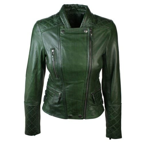 Our Dark Green Vintage Biker Women’s Leather Jacket is available in a range of sizes to ensure the perfect fit for women of all body types.