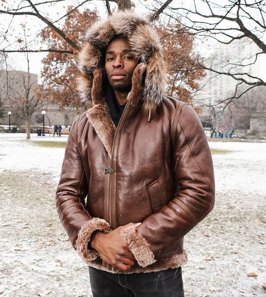 Lucas Black Aviator Bomber Shearling Jacket with Hoodie