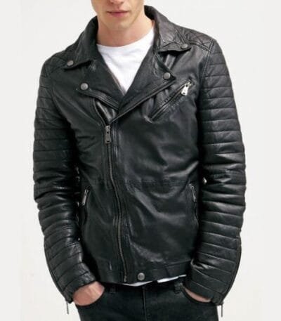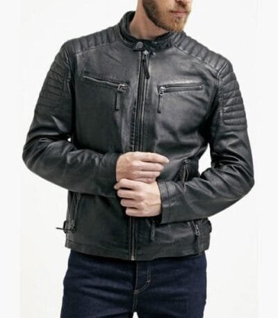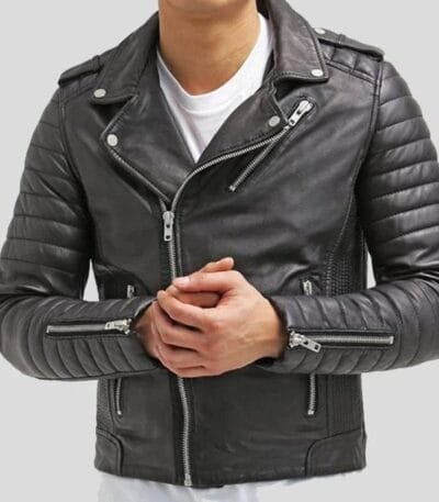 Mens Quilted Leather Biker Jacket