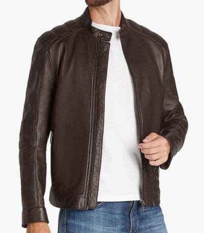 Mens Zipper Style Quilted Leather Jacket