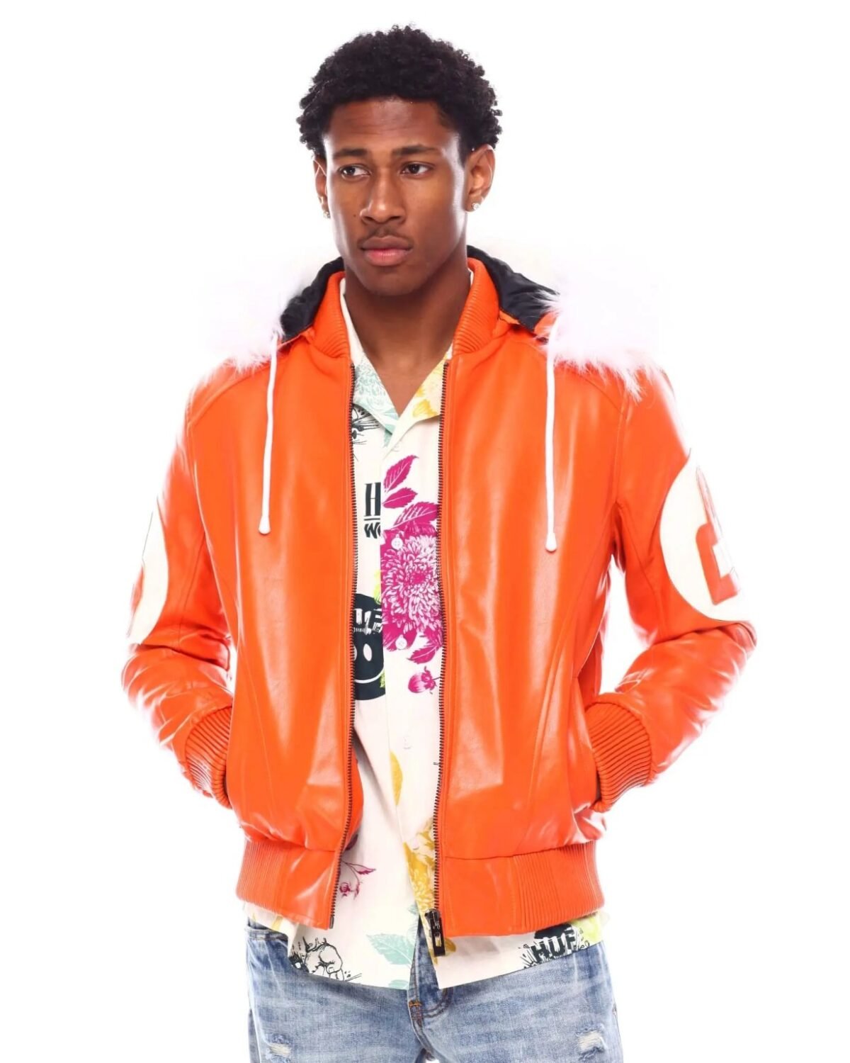 5 reviews for Mens Orange 8 Ball Hooded Leather Jacket