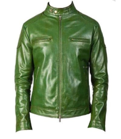 Moss Green Men Biker Leather Jacket
