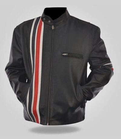 Strip Color – Men’s Black Leather Jacket