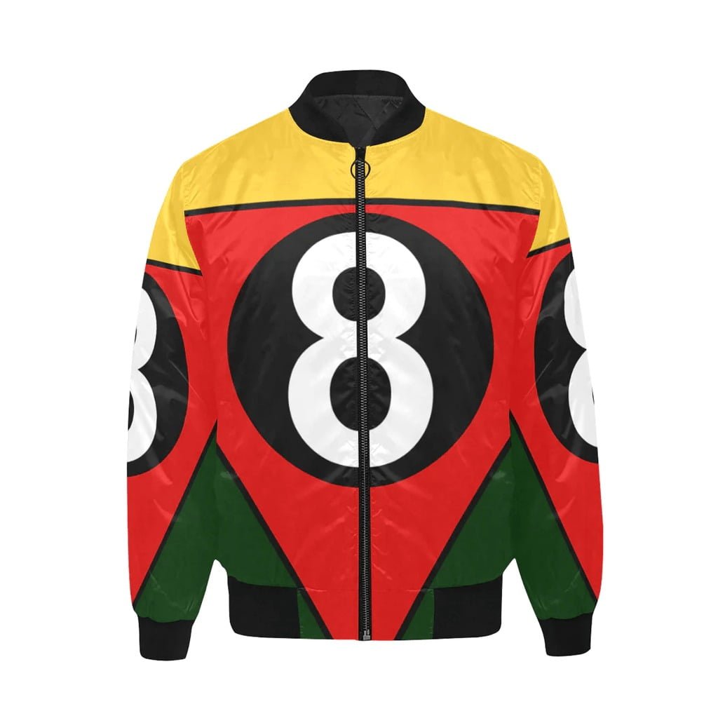 - Design: Contemporary bomber silhouette adorned with a playful 8 ball print.
