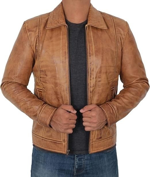 Designed with a shirt-style collar and zip closure, the Reeves Yellow Distressed Leather Jacket combines classic elements with contemporary flair. The camel brown color offers versatility, easily pairing with various outfits. With two external pockets and two inside pockets, you can keep your essentials close at hand while enjoying the perfect blend of style and functionality.