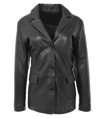 Women’s Classic Three Button Leather Blazer Janet Black