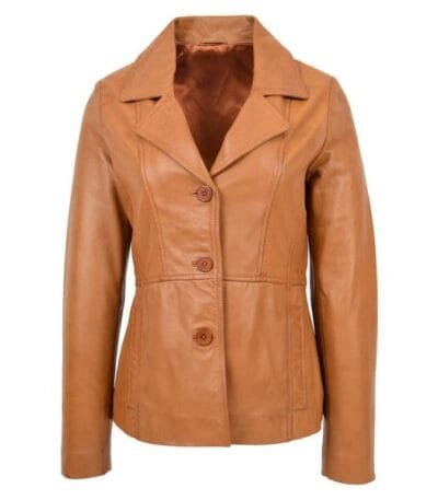 Women’s Classic Three Button Leather Blazer Ruth Tan