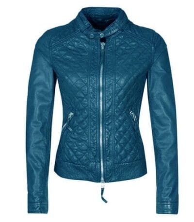 Women’s Classical Blue Elegant Leather Jacket