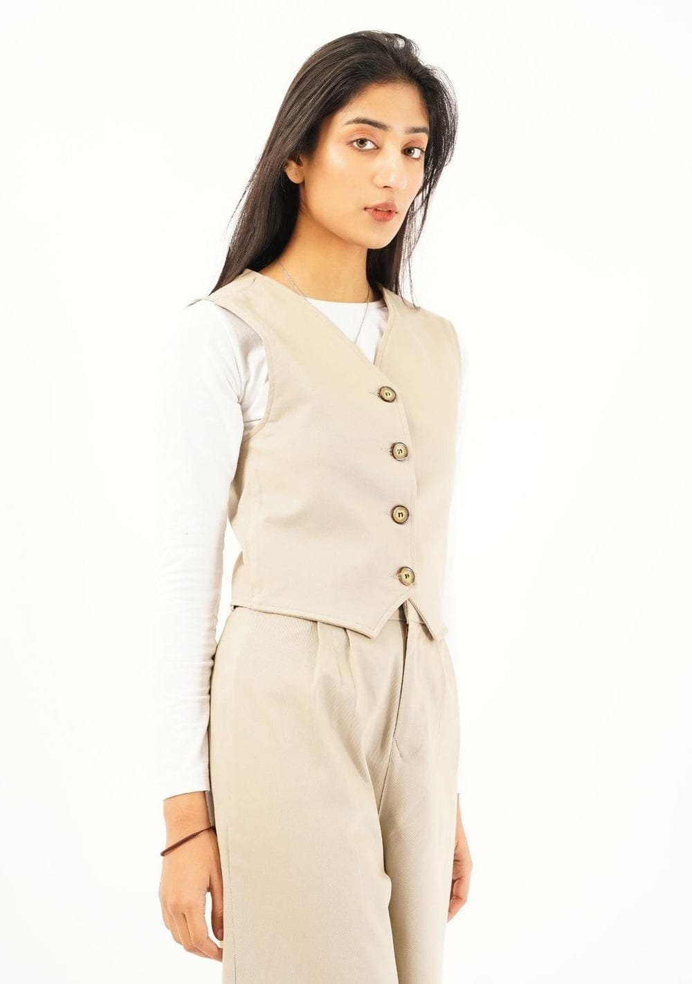 Crafted with a keen eye for detail, the Single Breasted Vest Blazer features a sleek V-neck style and a button-front fastening, offering a refined look that complements any outfit. The sleeveless design allows for effortless layering, making it an ideal choice for both warm and cool weather.