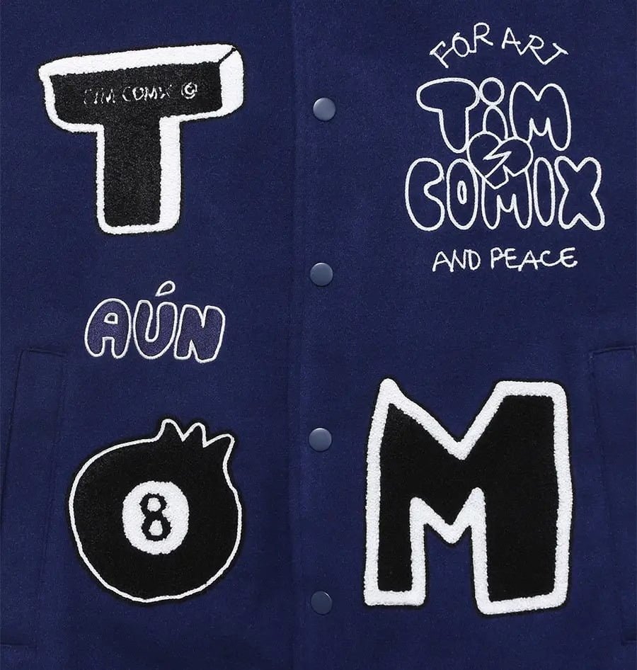 Discover the allure of the Timcomix 8 Ball Varsity Jacket Navy