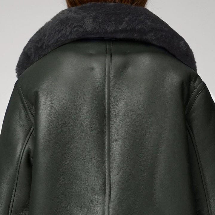 Women Green RAF Aviator Styled Lambskin Black Shearling Leather Jacket – Ultimate Winter Luxury