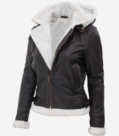 Mary B3 Hooded Bomber Brown Shearling Leather Jacket Women’s