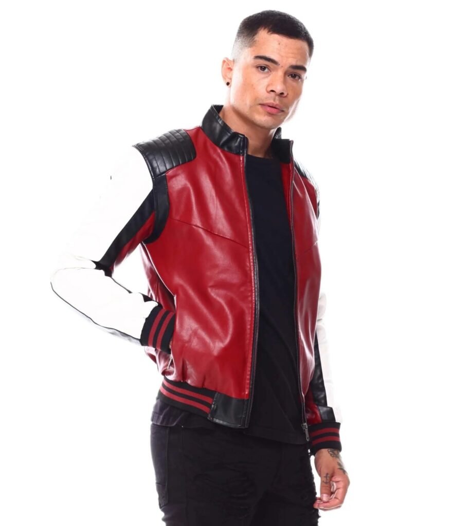 90s Moto Colrblock Red Leather Jacket