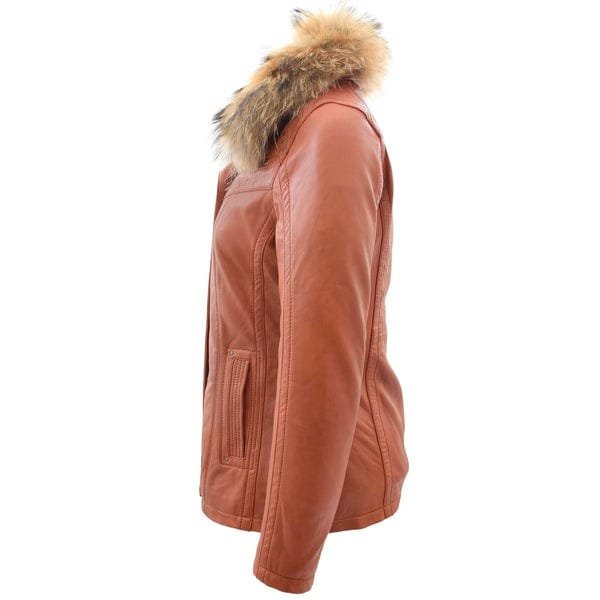 Women’s Leather Jacket with Detachable Collar Dalia Cognac