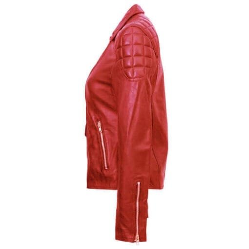 Don’t miss the chance to own this stunning Women’s Red Stylish Leather Jacket. Add a touch of elegance and a splash of color to your wardrobe. Purchase now from JacketsPlanet.com and experience the perfect blend of style, comfort, and quality.